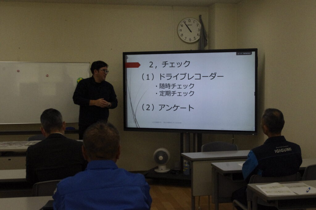 このコースは主に安全運転管理者を対象としたコースで、安全運転について考えさせられる内容でした。教官からは正しい運転姿勢やブレーキ操作、日常点検の重要さ、危険を予測した運転の重要性について教わりました。