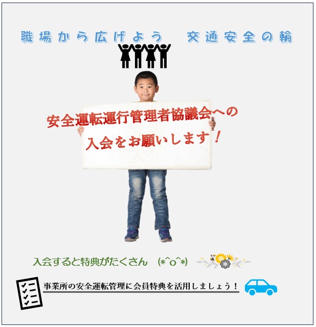 是非、「安全運転運行管理者協議会」への加入をご検討いただき、地域の交通安全活動にご協力をお願いします。